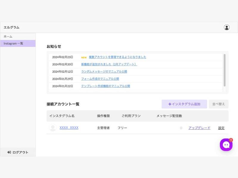 株式会社ミショナが提供するInstagram自動化ツール「エルグラム」。集客・売上げアップ・コスト削減を最大化。使い方、操作設定方法などの情報を提供します。