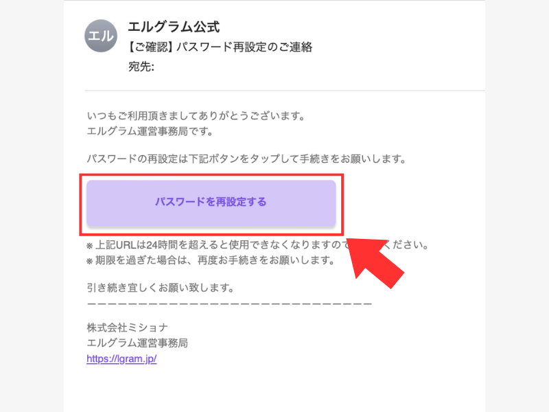 エルグラムのパスワードを忘れてしまった場合は、以下の手順でパスワードの再発行をしましょう。